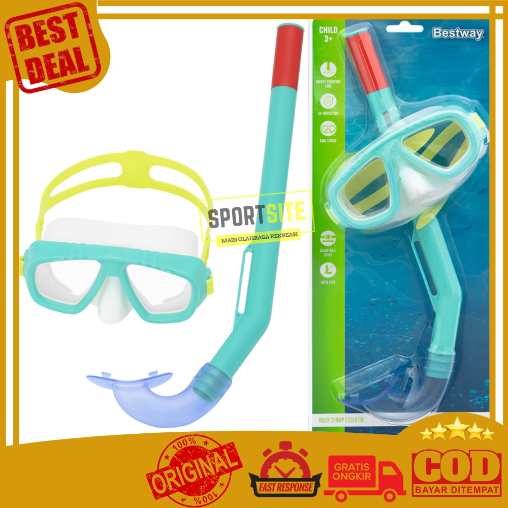 Bestway Fun Wave Diving Mask Snorkel Swimming Goggles Selam Kacamata Renang Anak Swim Goggles Set Snorkeling