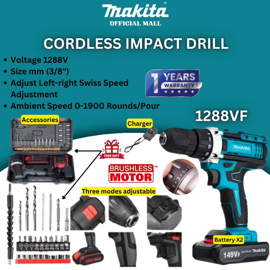 Mesin Bor Listrik Tanpa Kabel 2 Baterai Cas 13mm Mata Bor Obeng Listrik Murah Bor Tangan Baterai Besi Tembok Beton Kayu