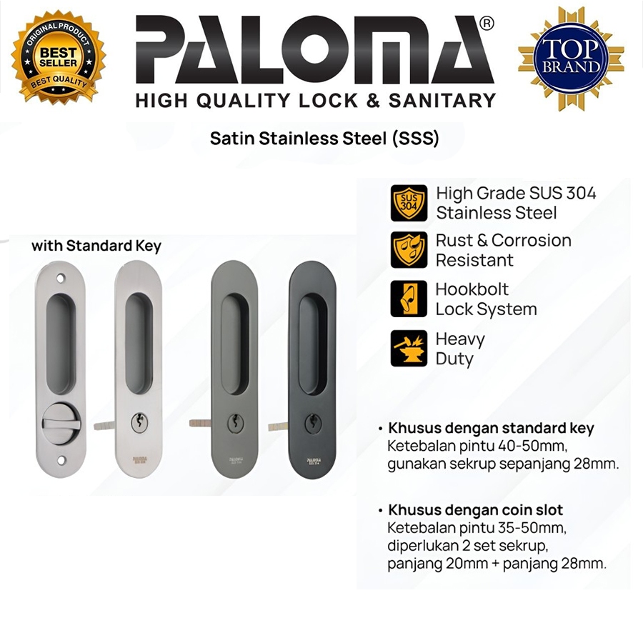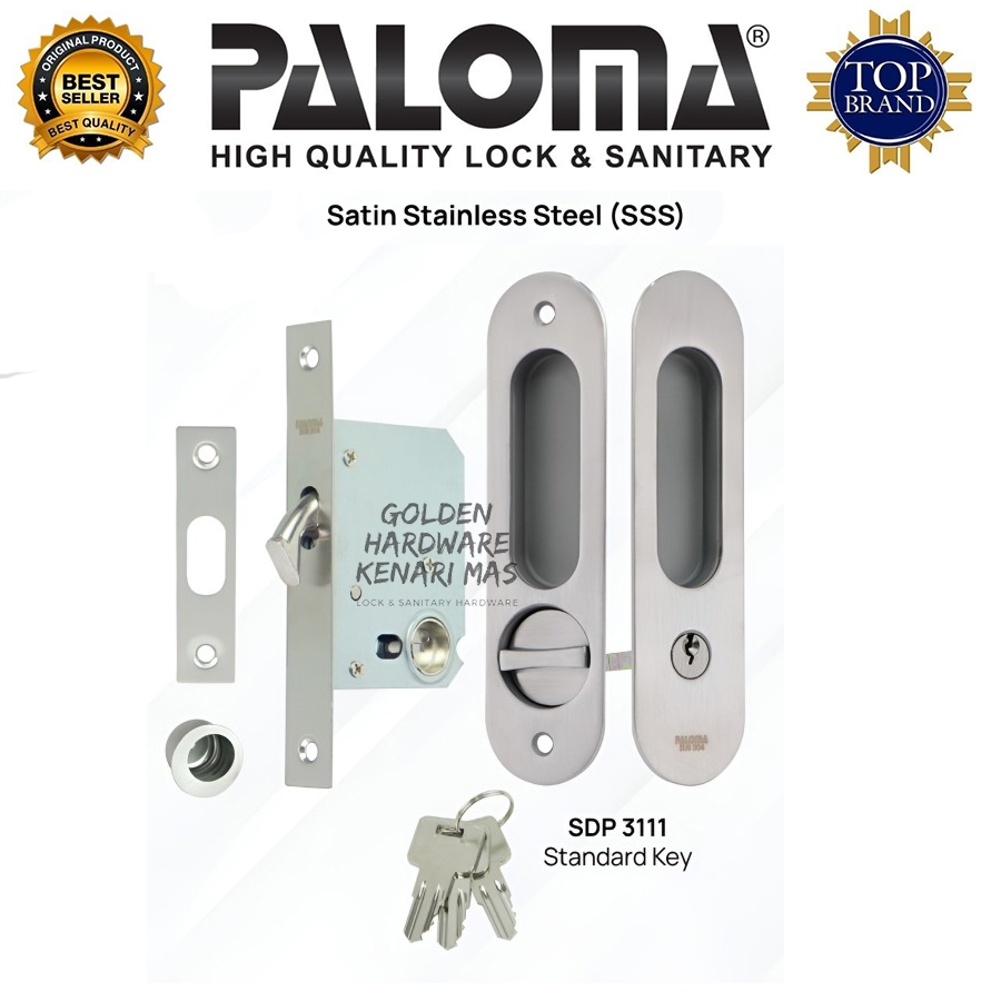 PALOMA SDP 3111 3112 3113 Handle Tanam Set Kunci Pintu Sliding Comen Geser Oval With Standard Key Stainless SUS 304
