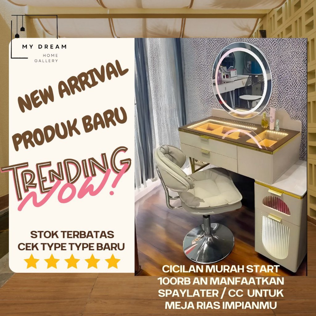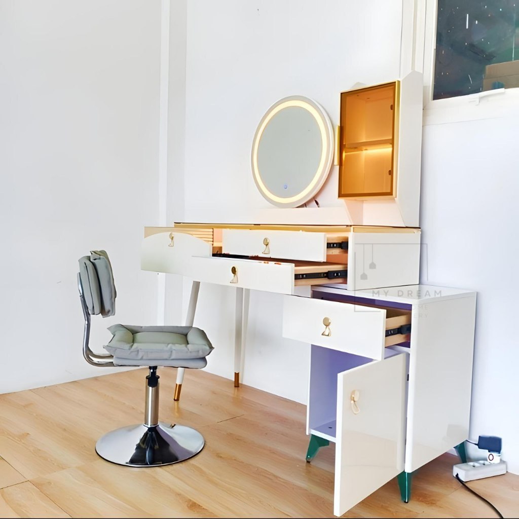 Meja Rias LED 3 Warna Touchscreen Sentuh Meja Rias Import Make Up Table Cermin Kaca Lampu Handsensor Wave Kaki Besi Uk.