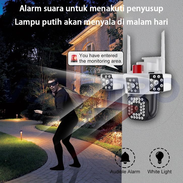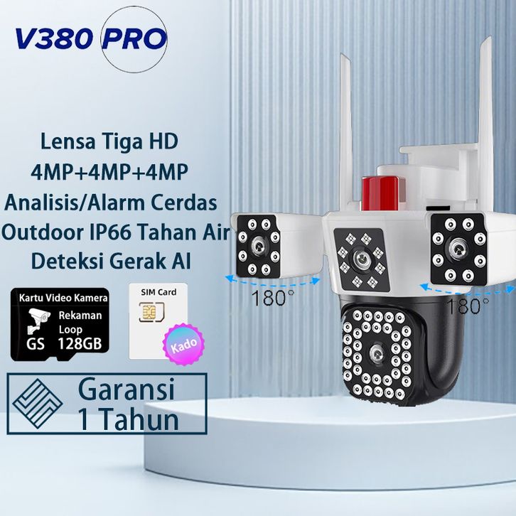 V380 Pro 4G Kamera CCTV Pembesaran 10x Lensa Tiga Penglihatan Malam Penuh Warna Multifungsi