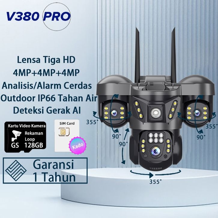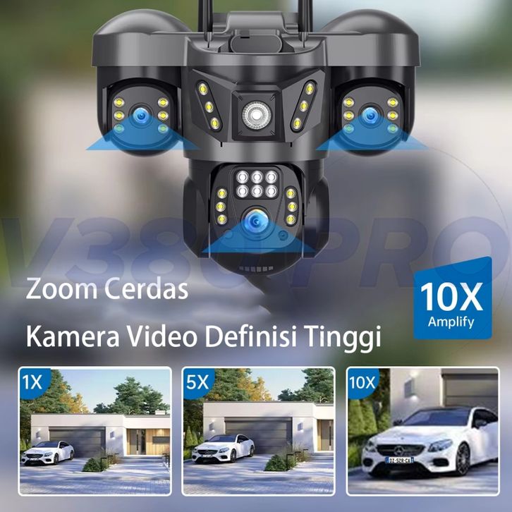 V380 Pro Kamera CCTV 3 Lens 10X Zoom Outdoor IP65 Waterproof Dorongan Informasi Alarm Cerdas