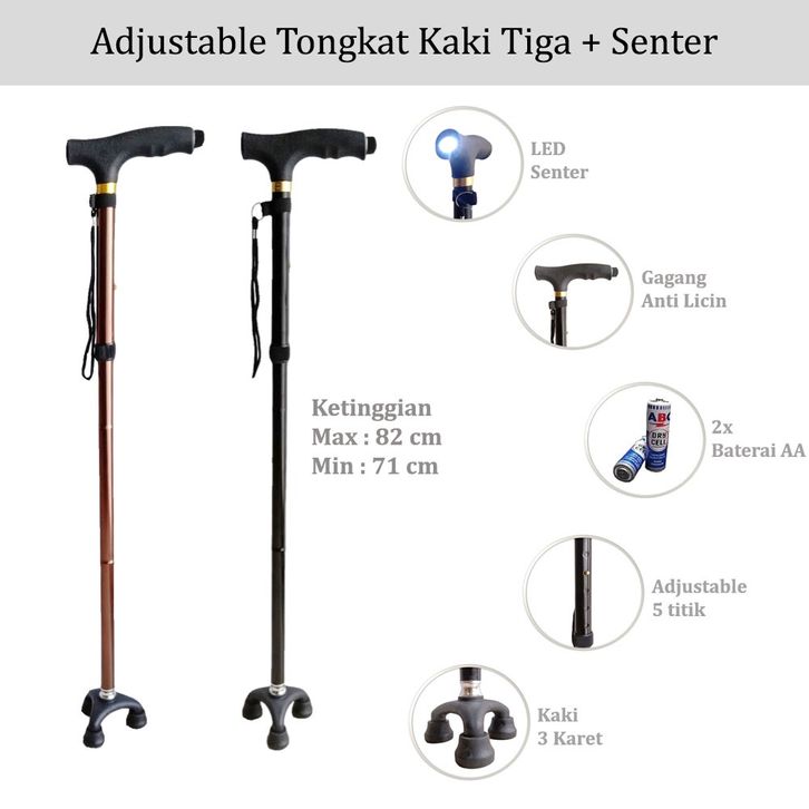 ALAT BANTU TONGKAT SENTER ALUMINIUM JALAN TONGKAT LIPAT KAKI TIGA TONGKAT KAKI 3 MANULA [TGT5] ORIGINAL READY STOK