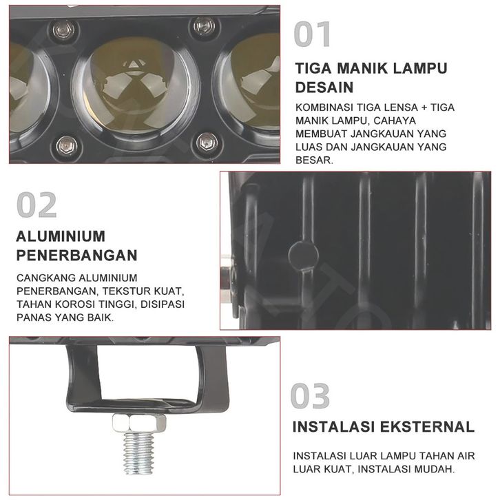 PROMO (Barang Dagangan Dalam Stok)Lampu Tembak LED Laser/Lampu Sorot Laser Q9 3 Mata 2 Warna/HI LOW 60 WATT LAMPU
