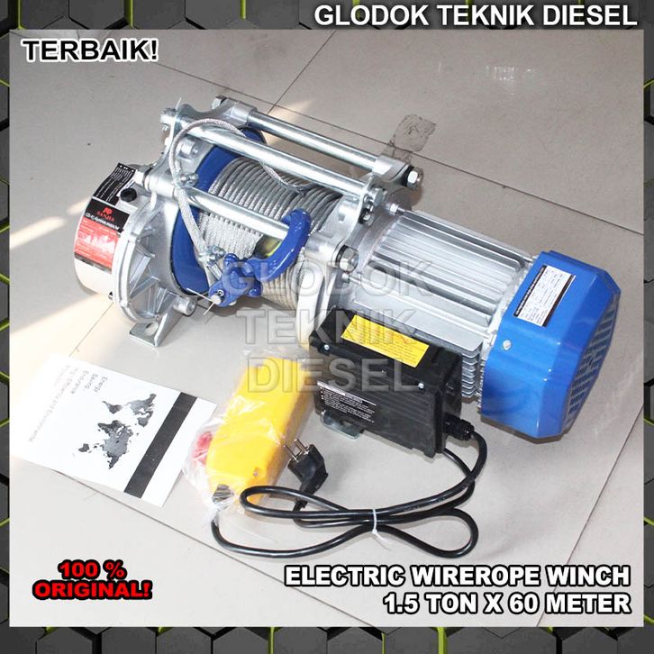 Electric Wire Rope Winch Hoist 1.5 Ton x 60 Meter 1500 KG 30 Meter 30M 60M 120 Meter 120M 1 phase Wirerope ORI