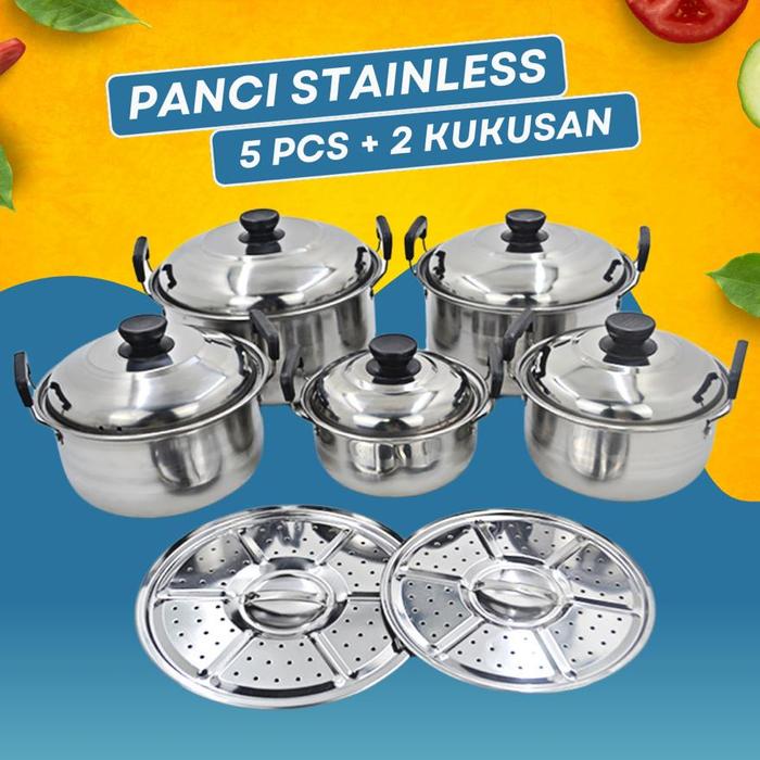 Panci Set Anti Lengket Stainless Steel isi 5 Serbaguna FREE 2PCS KUKUSAN Kitchenware