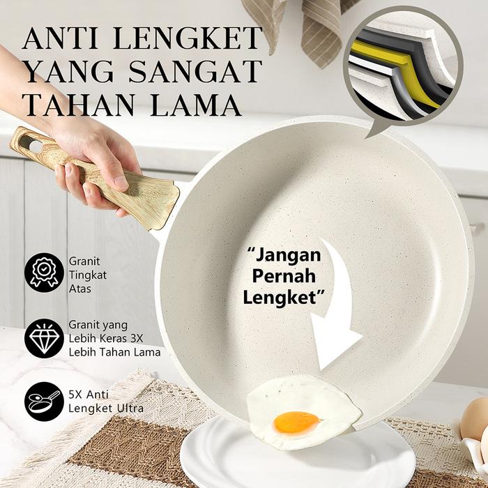GiPP Panci Wajan Penggorengan Anti Lengket Dengan Tutup 20/24/28CM(White)