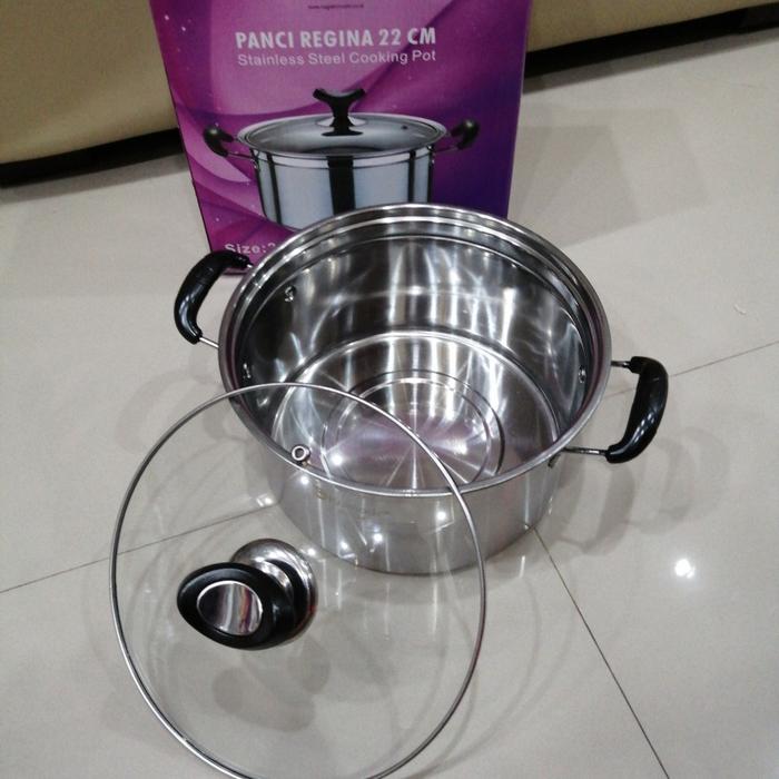KOMODO PANCI REGINA 22 CM STAINLESS STEEL TUTUP KACA