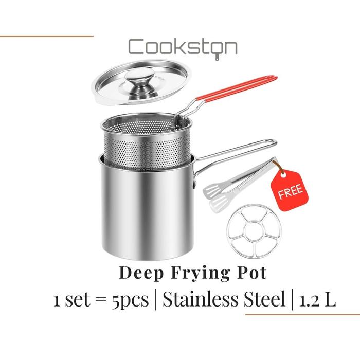 COOKSTON FREE TONG! 304 Stainless Steel Deep Frying Pot - Tempura Fryer Pan - 1.2L