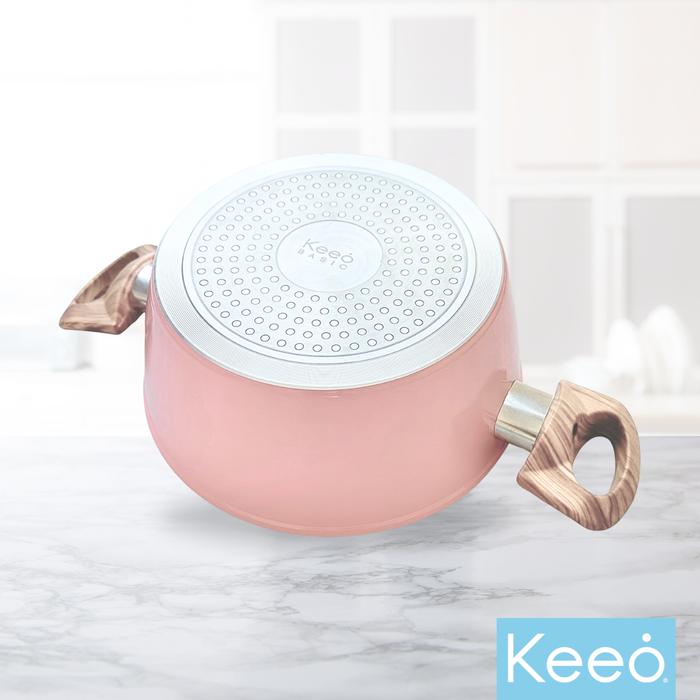 Keeo 20 cm Panci Casserole Pan Anti Lengket Marble Granit 2 Gagang Pink