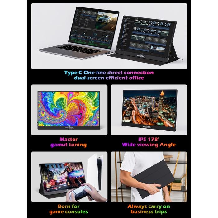 Goojodoq 15,6" Fhd 1080P Portable Monitor For Office/Gaming Support 4K