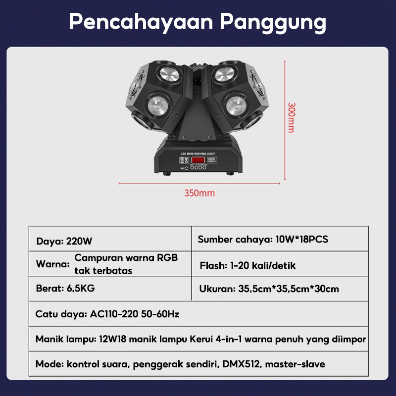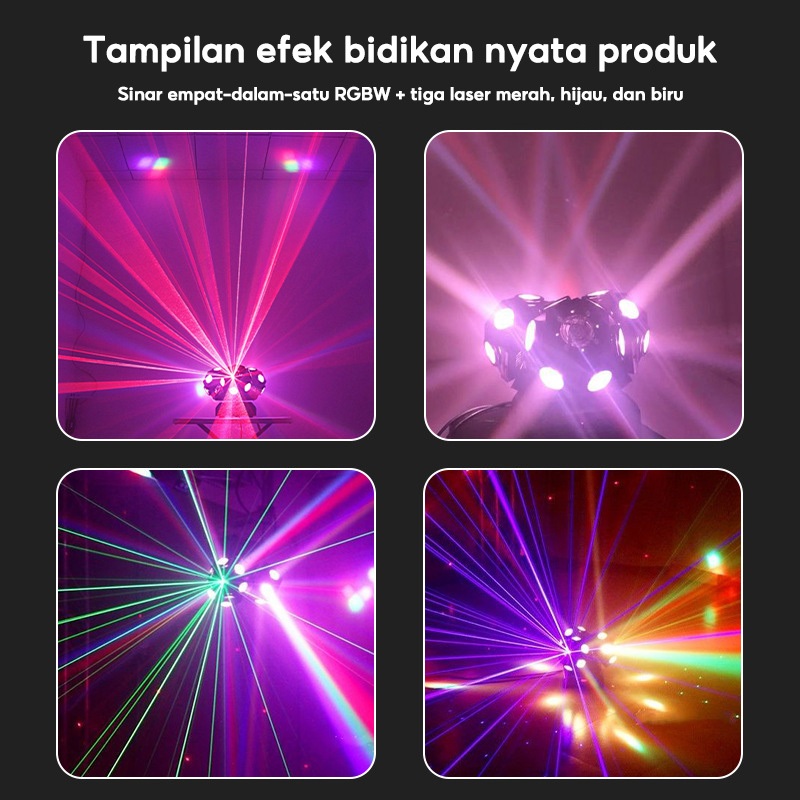 KAIY Lampu Panggung Moving Ball 220W 4in1 Laser Beam light Disco Putar 18 Bola Led RGBW Audio Control DMX