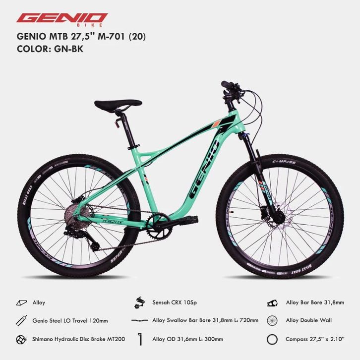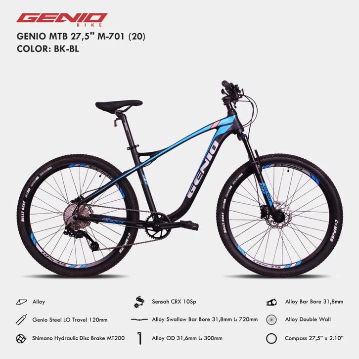 SEPEDA GUNUNG MTB 27.5 INCH GENIO M701 10 SPEED FRAME ALLOY REM HYDRAULIC