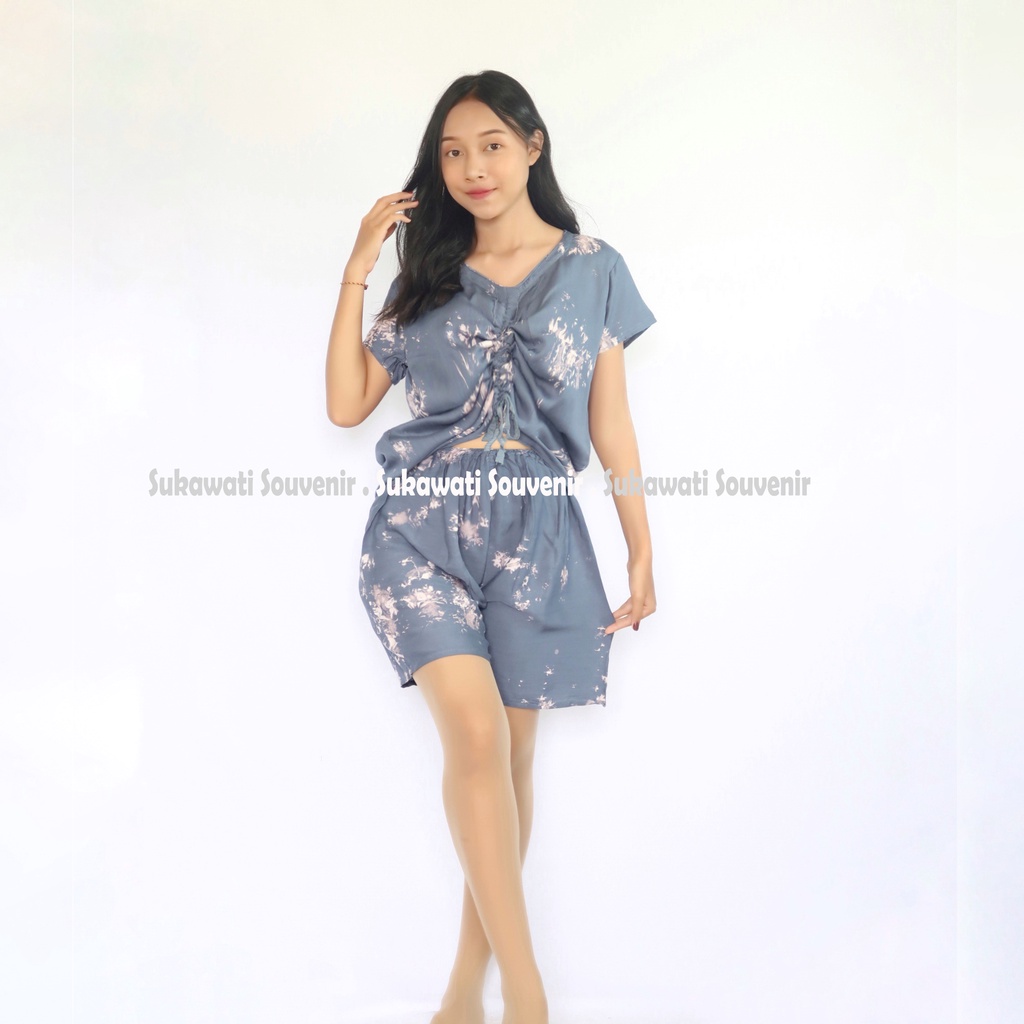 Setelan Pendek Tie Dye Kupu Serut Rayon Adem