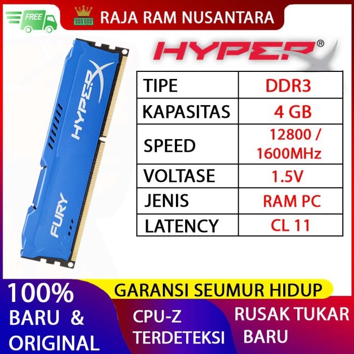 RAM PC KINGSTON HYPERX FURY GAMING DDR3 4GB PC 12800 / 1600 MHz RAM KOMPUTER 1.5v 4GB