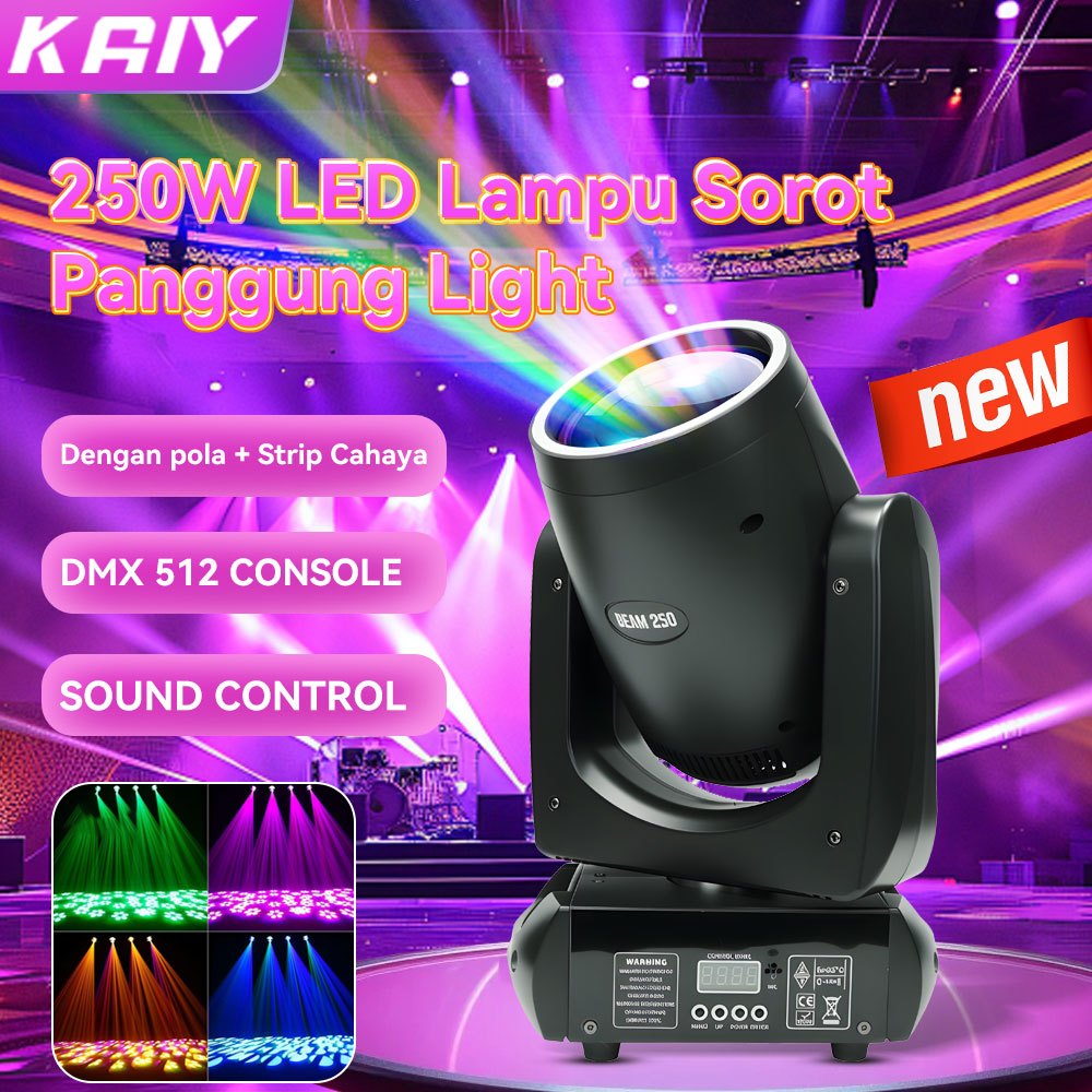 KAIY 250W Lampu Sorot Panggung Light Moving Head Beam Light Led Disco Peralatan Pencahayaan Panggung Daya Tinggi Menduku