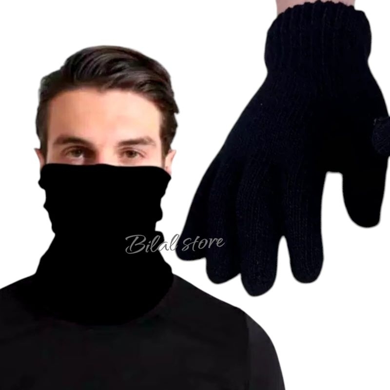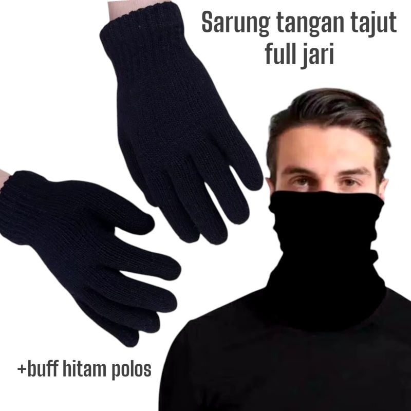 PAKET SARUNG TANGAN RAJUT FULL JAR + BUFF HITAM POLOS