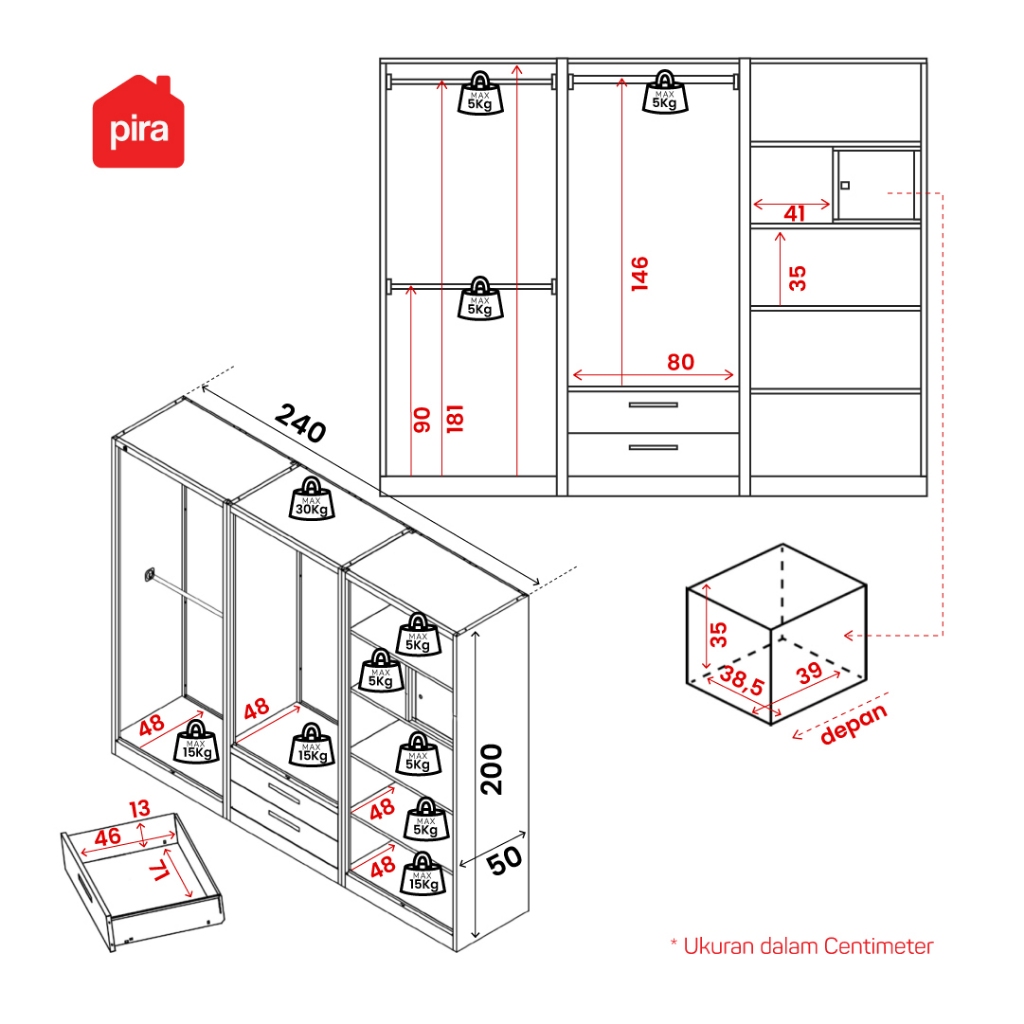 PIRA - STEEL 6P FGD MWD Lemari Pakaian Besi 6 Pintu dengan Laci dan LED
