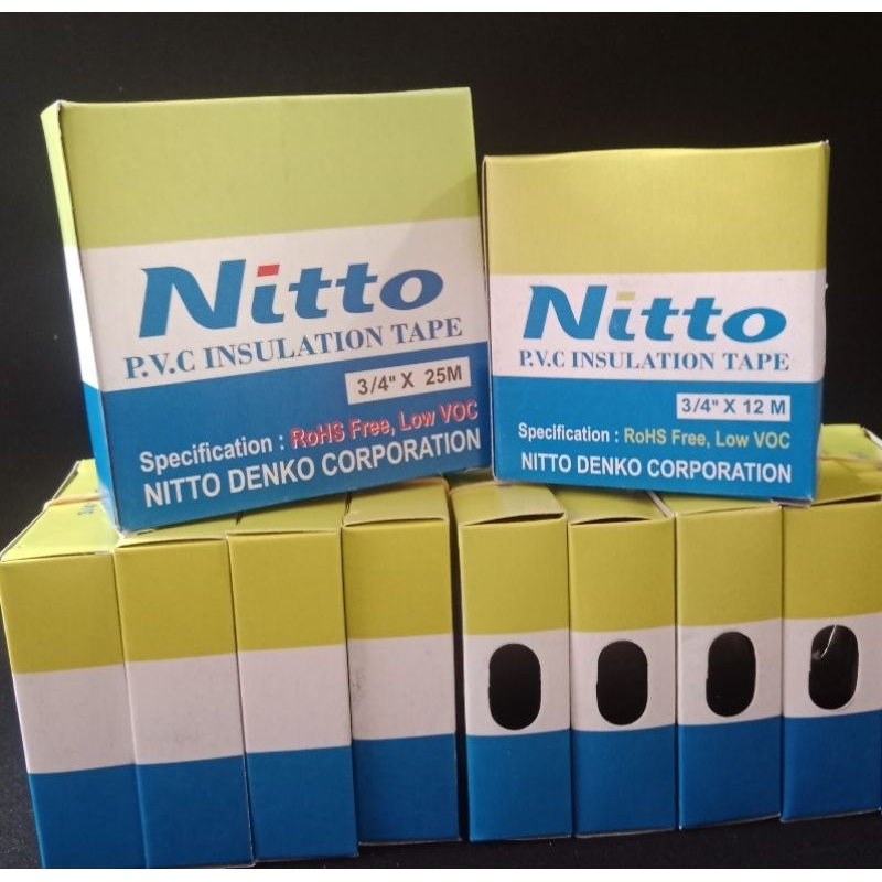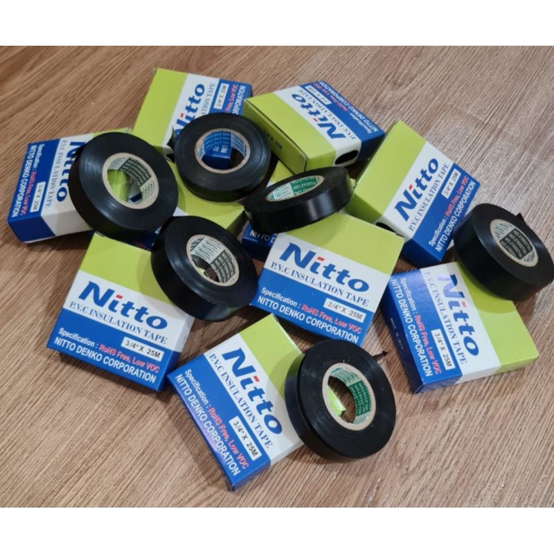 Paket isi 10pcs Isolasi solasi selotip nitto original "3/4 18mm x 12 & 25 meter pembungkus kabel listrik
