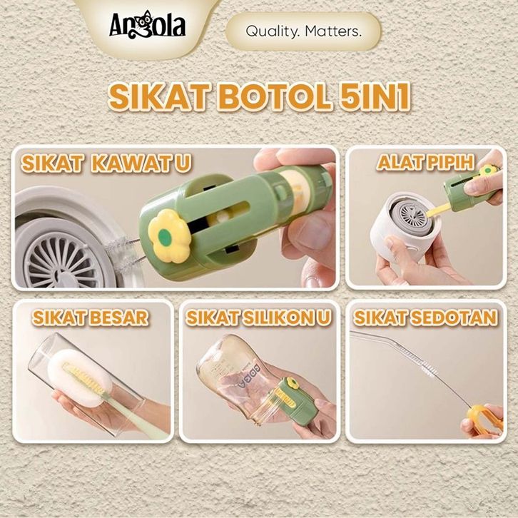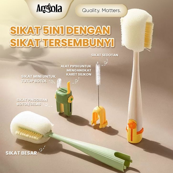 PROMO ANGOLA Sikat Pembersih Botol 5IN1 S39 Sikat Botol Bayi/Tumblr/Teko/Gelas Serbaguna / Bottle Brush