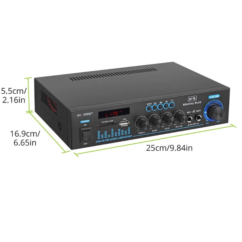 Power Amplifier AV-668BT 2000W Bluetooth EQ Audio Amplifier Karaoke Home Theater FM Radio