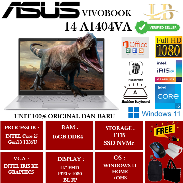 Laptop Asus Vivobook 14A1404VA Intel Core i5 1334U 16GB 1TB 14"FHD IPS BL FP Win11Home Silver +OHS