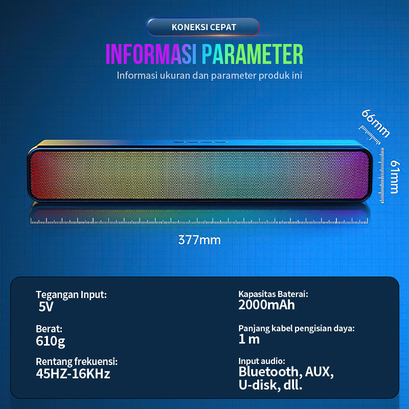 MANU RGB Wireless Speaker Bluetooth Super Bass Soundbar Wireless Laptop Computer Gaming Music Box Full Bass Portable Aud
