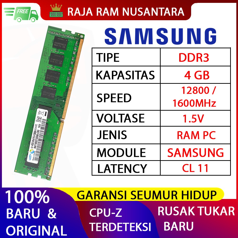 RAM PC SAMSUNG DDR3 4GB PC 12800 / 1600 Mhz ORI RAM KOMPUTER 1.5v 4GB