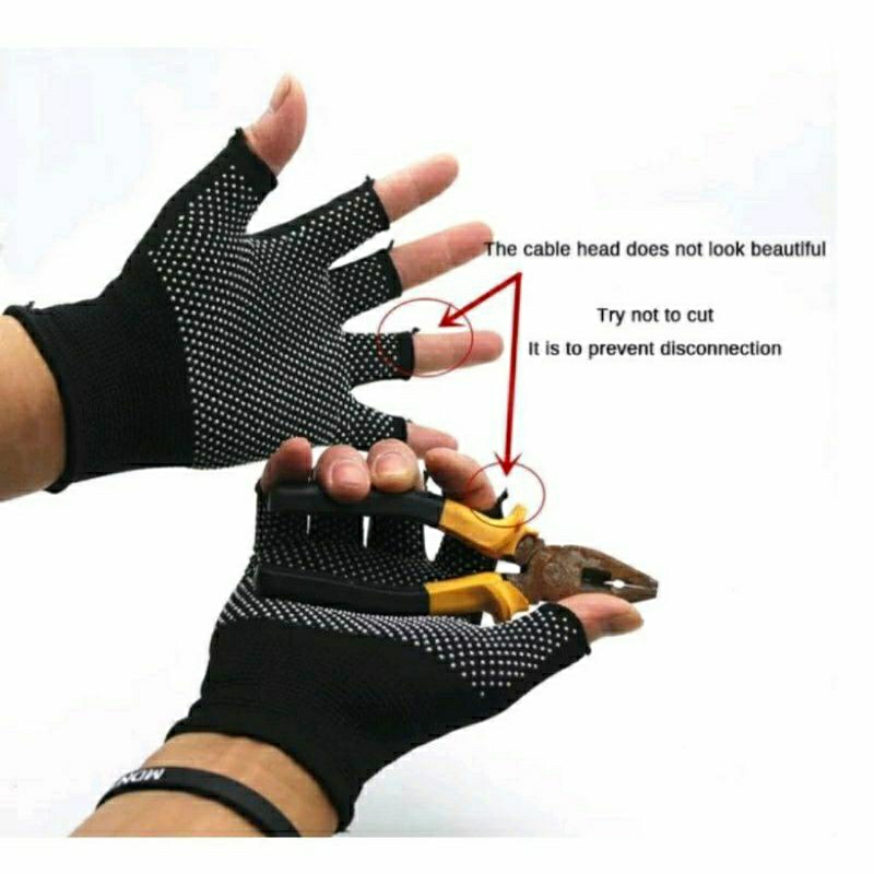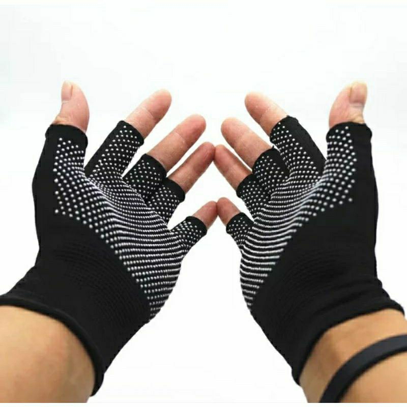 Sarung tangan motor setengah jari anti slip woll bintik memancing Gym