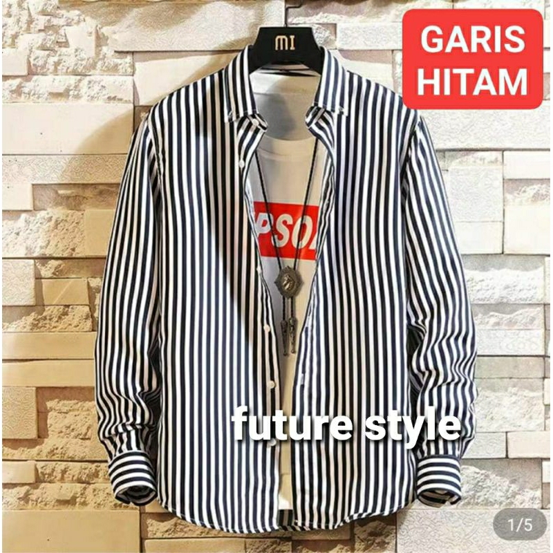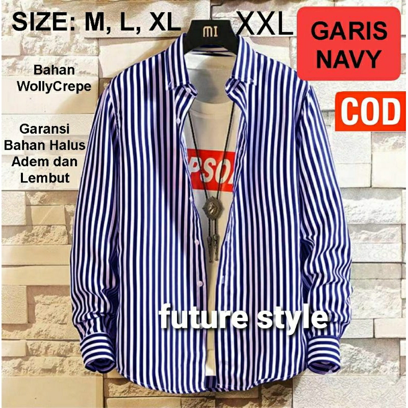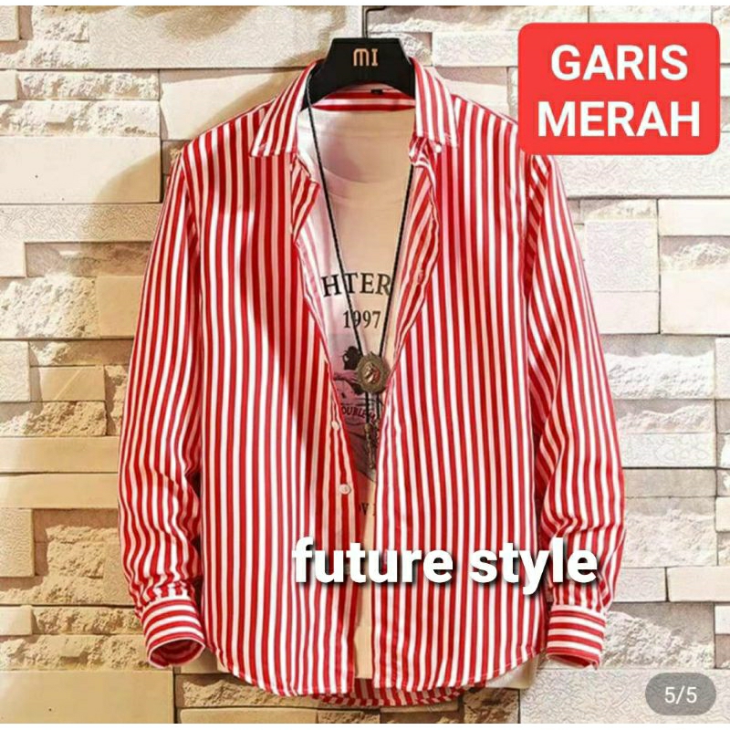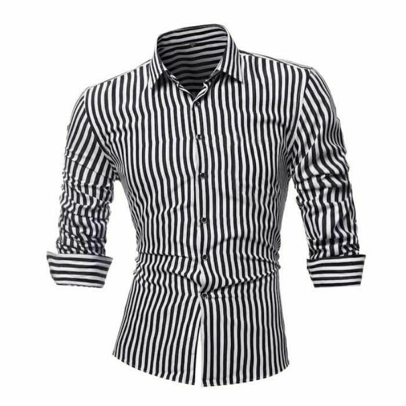 Kemeja Garis Salur Pria Lengan Panjang Katun Flanel Import Jumbo Baju Atasan Cowok Casual Elegan