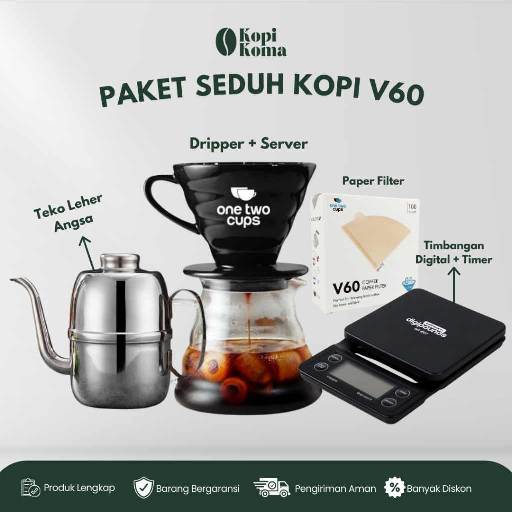 Paket Alat Kopi Rumahan Manual Brew v60 dripper set lengkap + Timbangan Timer