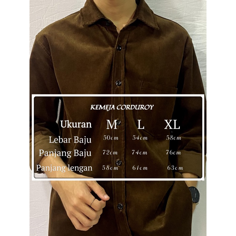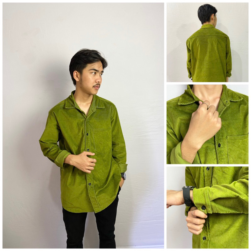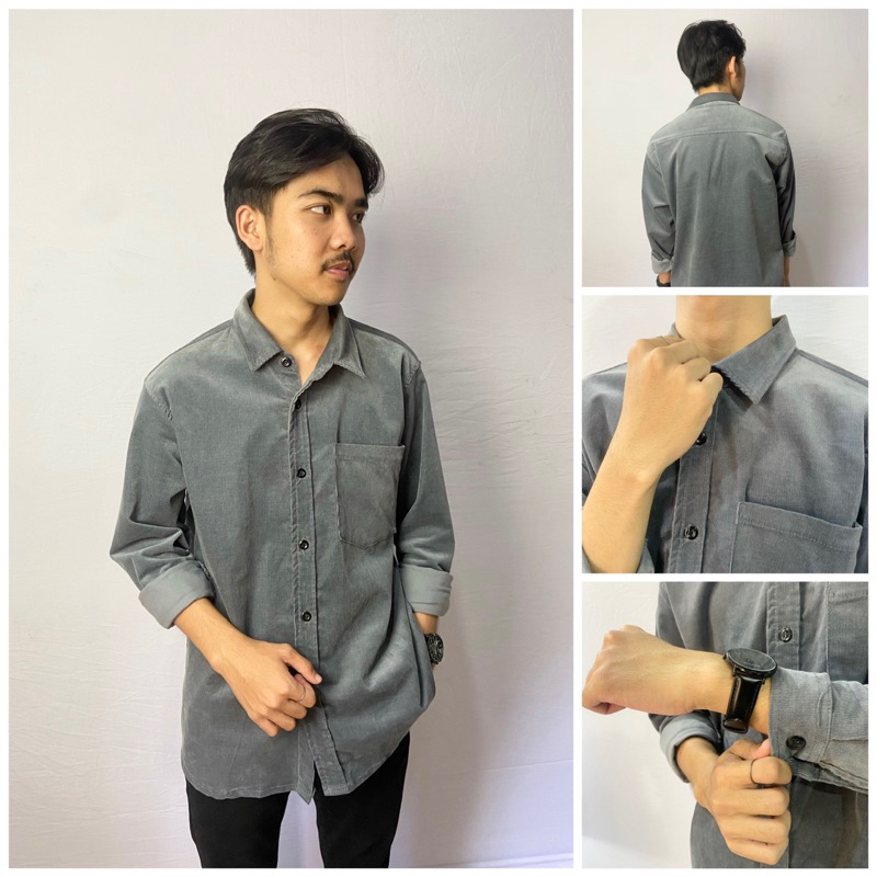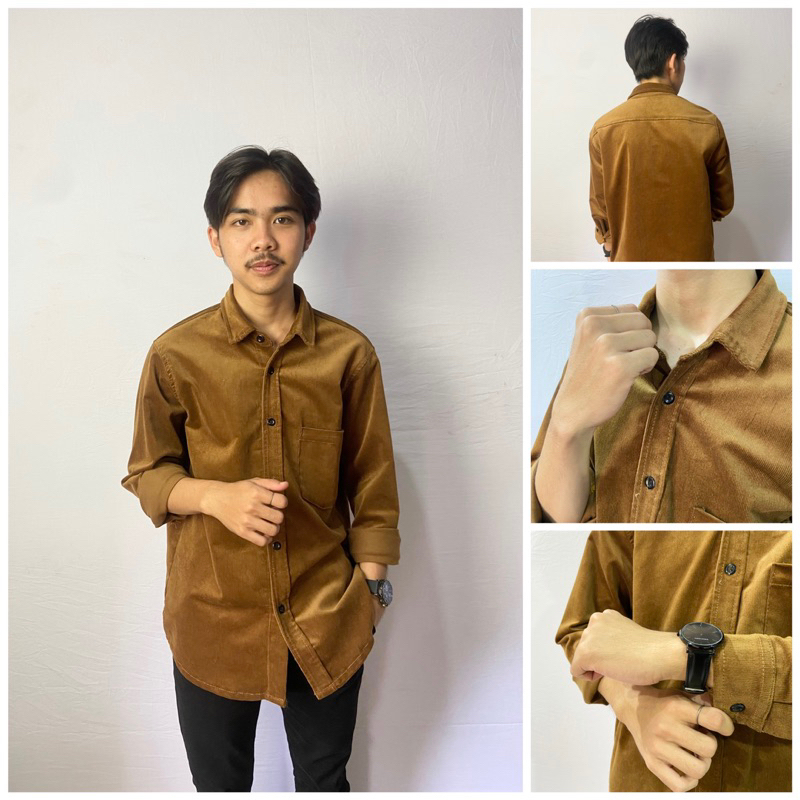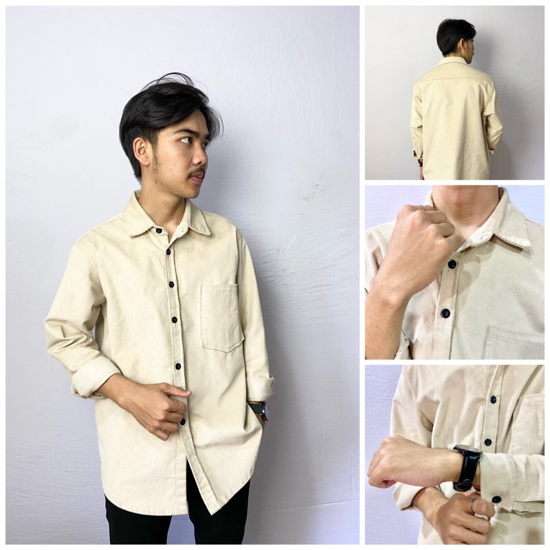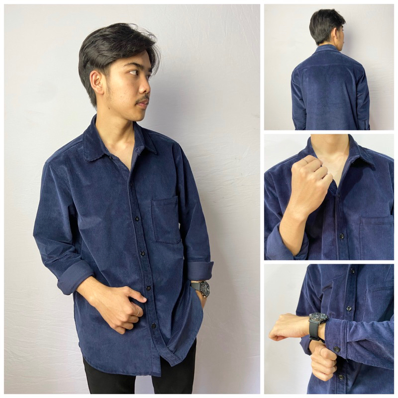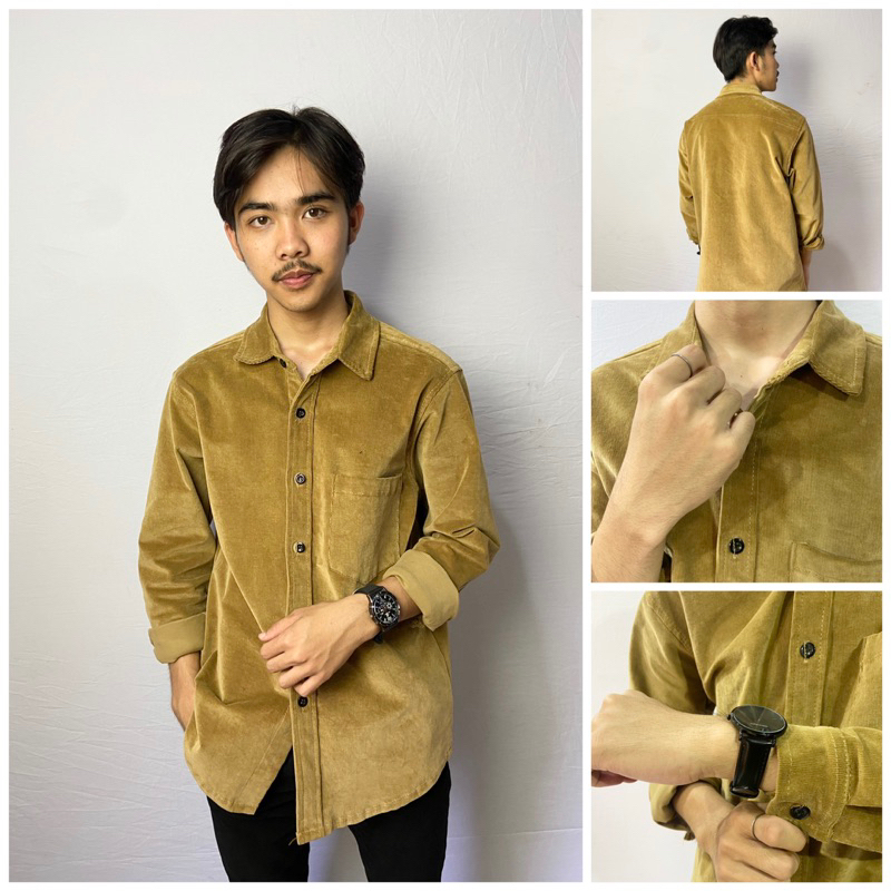 Kemeja Corduroy Pria Oversize Tangan Panjang Tebal