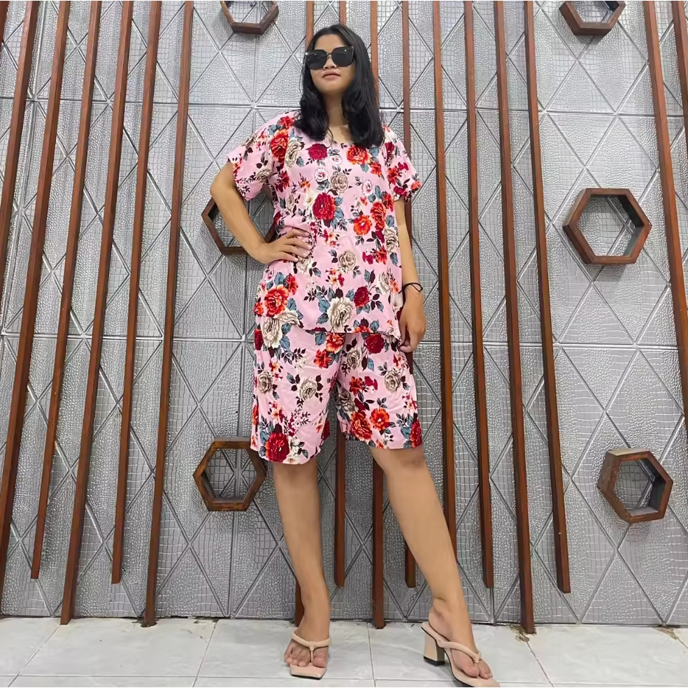 SETELAN BAJU TIDUR CELANA PENDEK BALI RAYON MOTIF BUNGA TROPICAL COCOK UNTUK CUA PANAS SETELAN WANITA KEKINIAN 2025