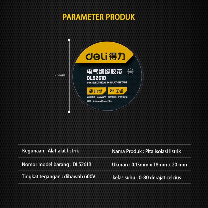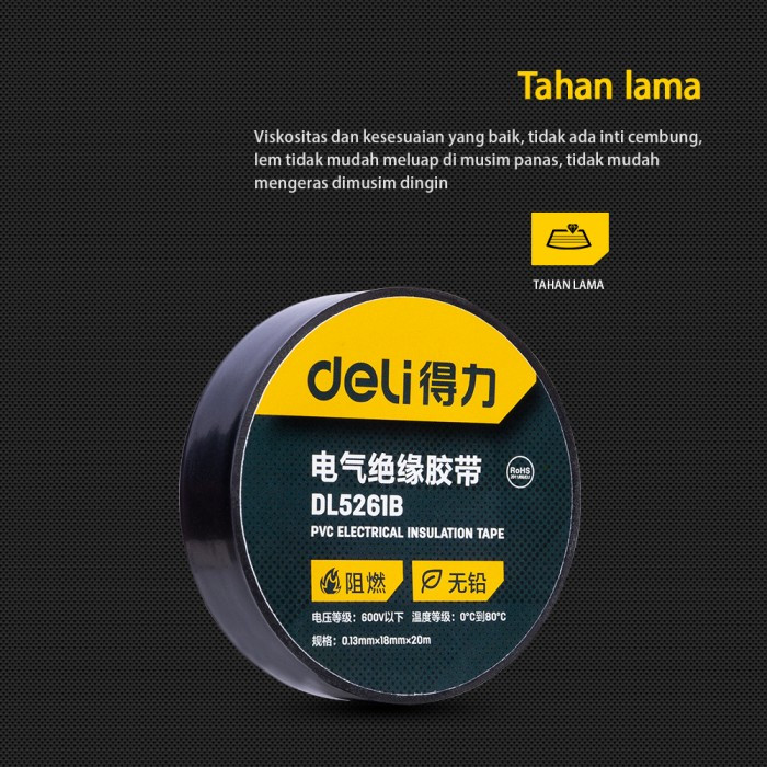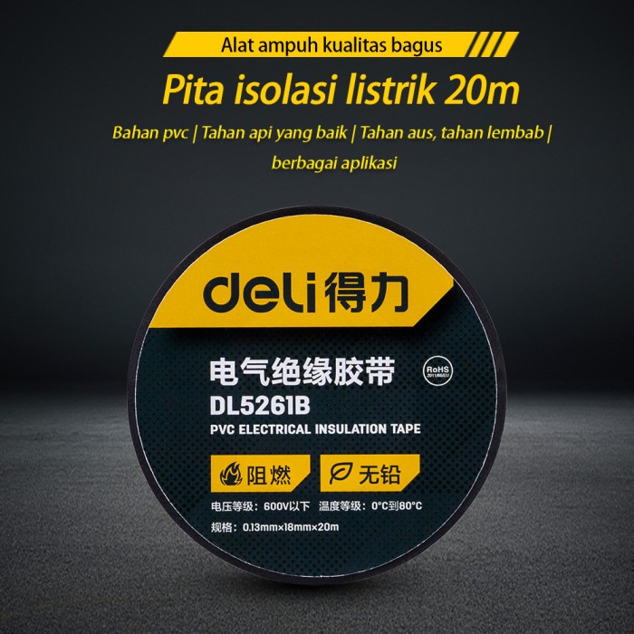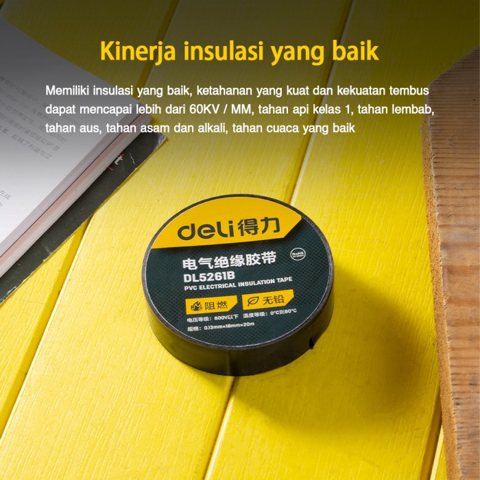 Deli Electical Tape / Isolasi Listrik 0.13mmx18mmx10/20m PVC DL5261