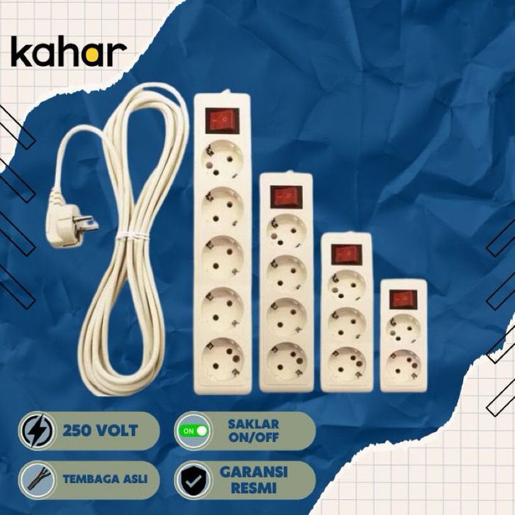 Stop Kontak + Kabel 2/3/4/5 Lubang 1.5/3/5 Meter Sni Asli Tembaga