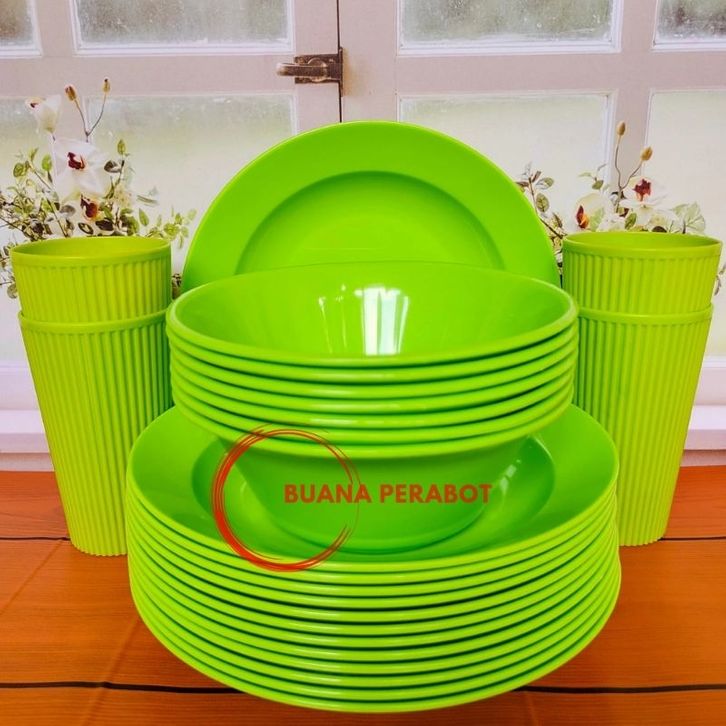PROMO PAKET ISI 12 PCS PIRING CAMPUR MANGKUK DAN GELAS PLASTIK TEBAL FOOD GRADE TAHAN PANAS ohids