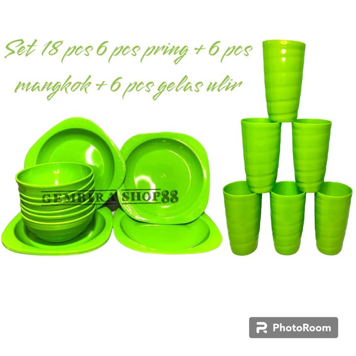 TERMURAH SET 18 PCS PIRING MANGKOK GELAS ULIR PLASTIK obefg
