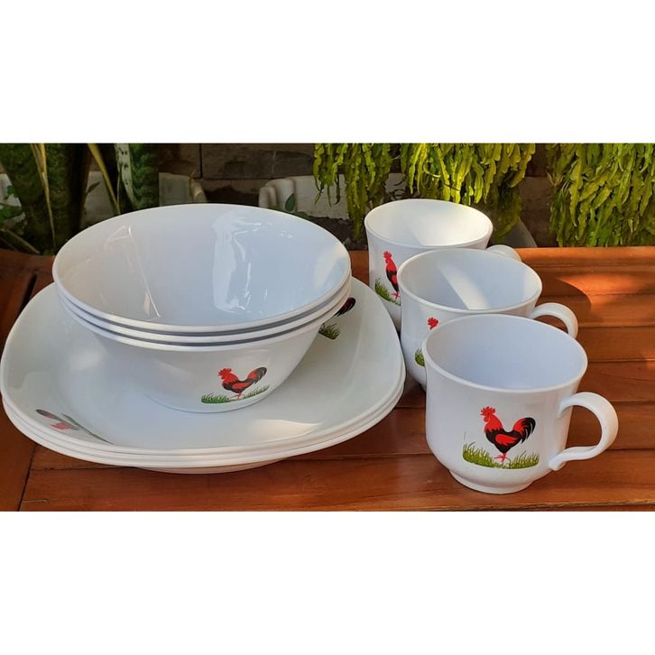 TERBARU Paket Hemat Piring, Gelas, Mangkuk Cap Ayam Jago 3 Pcs agoll