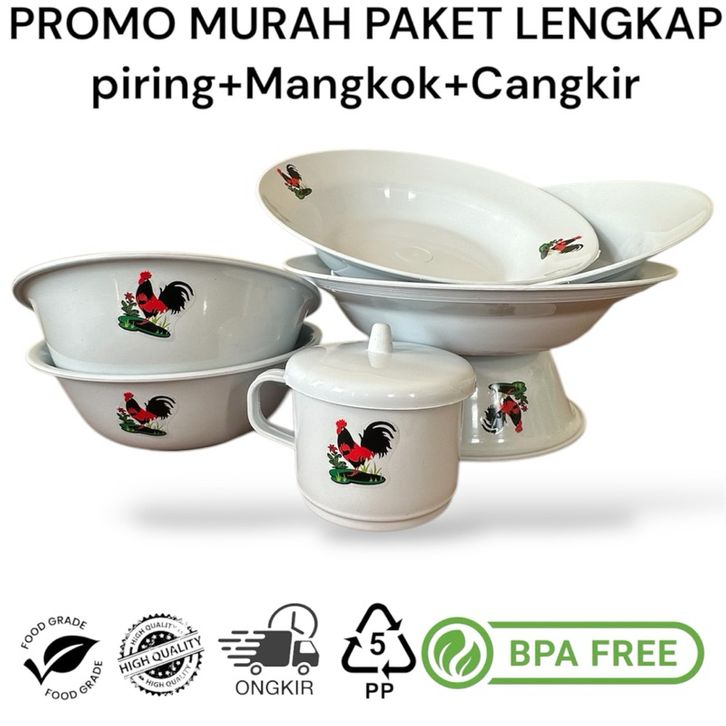 PREMIUM PAKET LENGKAP ISI 9 PCS 3pcs Piring Jago + 3pcs Mangkok Jago + 3pcs Gelas Cangkir asics