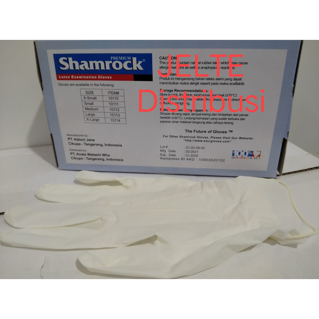 Sarung tangan Shamrock Latex No Powder / Sarung Tangan Karet Medis / Sarung Tangan Kesehatan / Sarung Tangan Medis / Sar