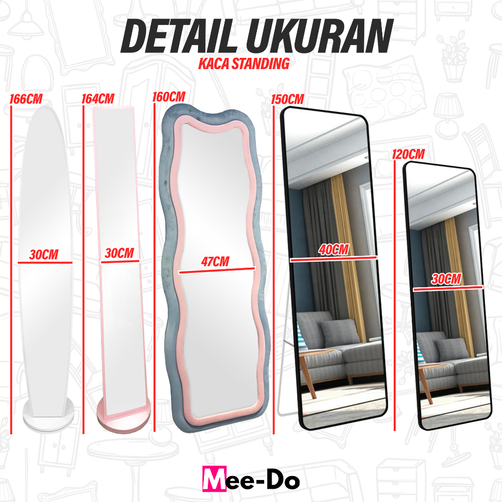Standing Mirror Mee Do Aesthetic Kaca Cermin Full Body Bludru