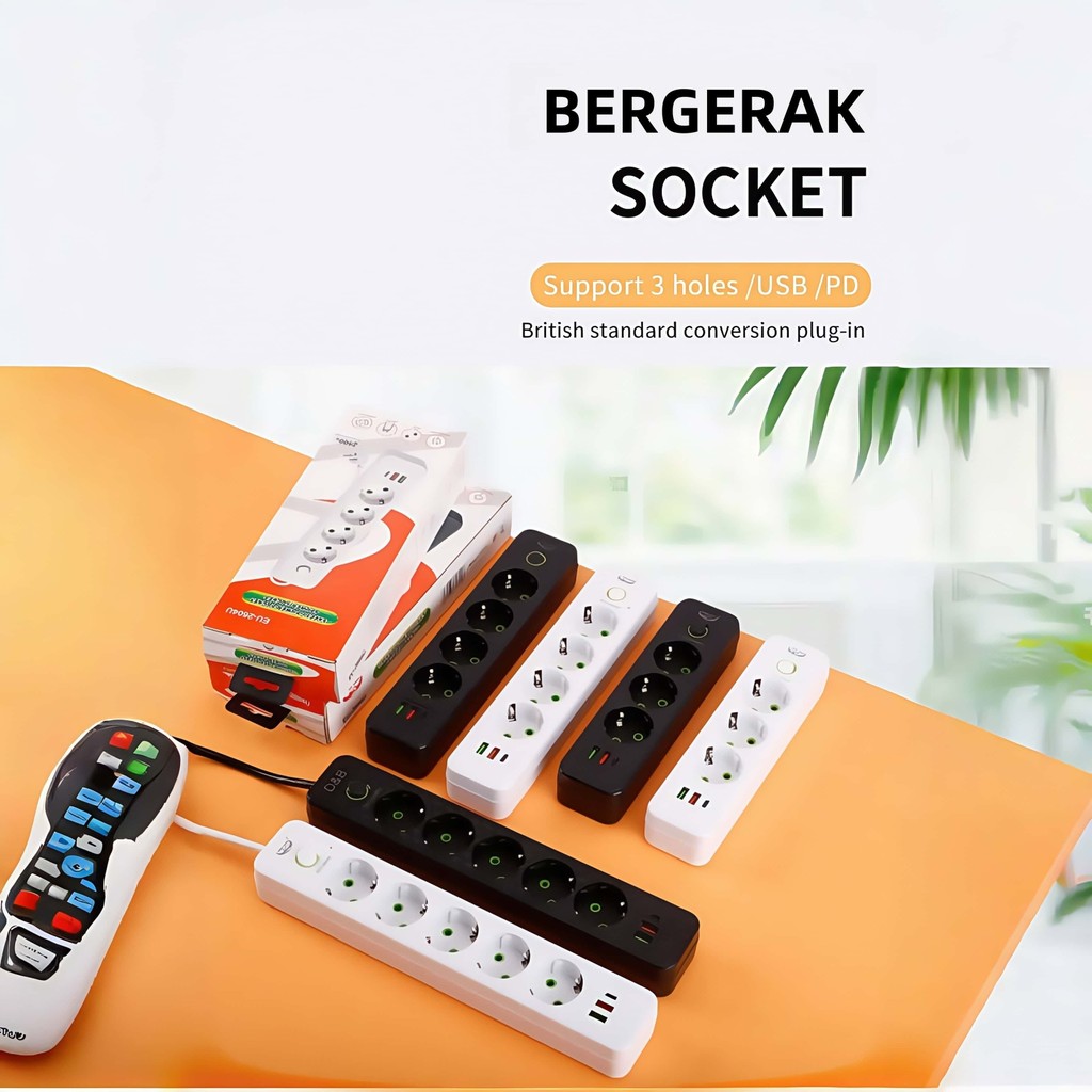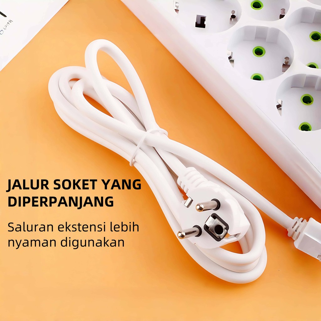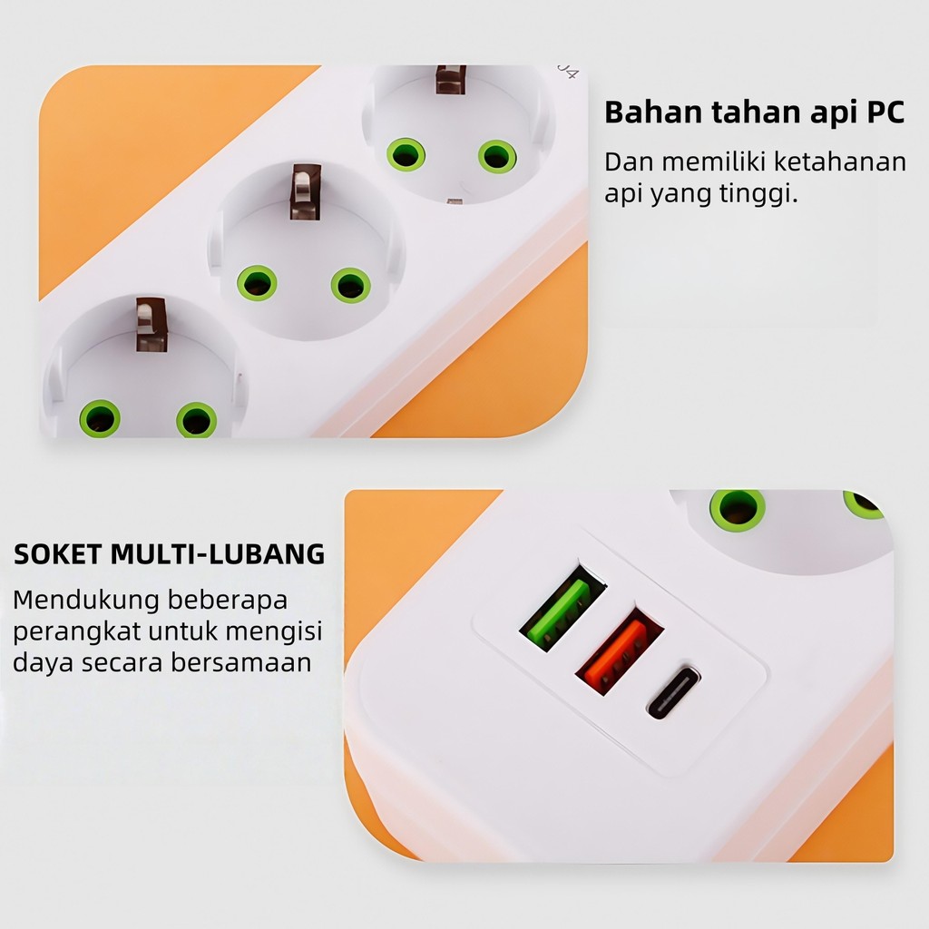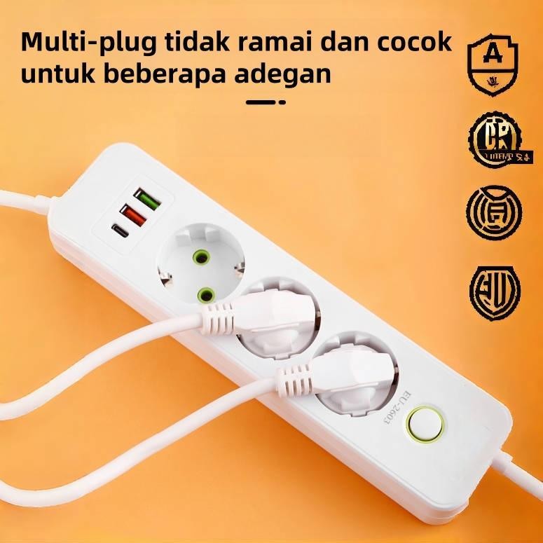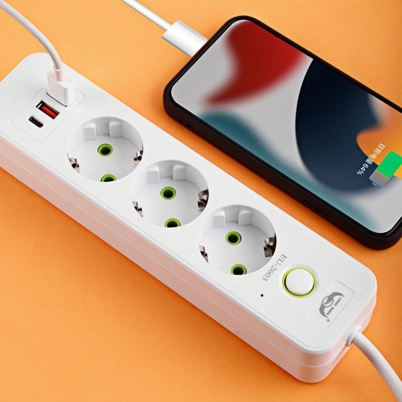 Power Strip standar Eropa Power Socket Multiguna Colokan Eropa 2 Meter USB+TypeC Power Socket Elektrik plug-in rumah tan