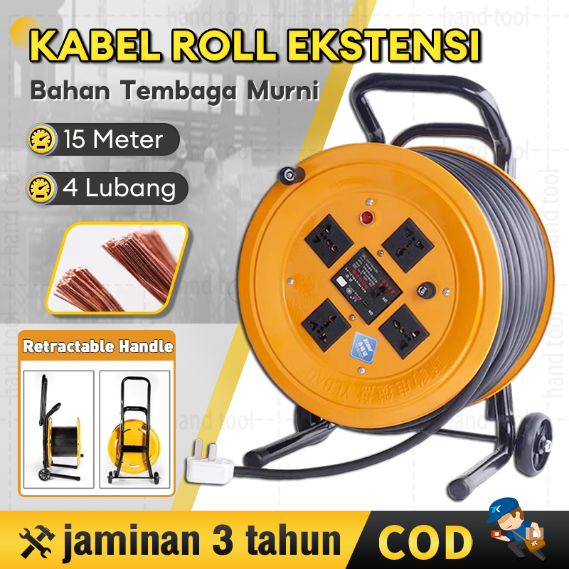 Reaim 15M Kabel Roll Kabel Saklar Kabel Meter 4 Lubang Kabel Bok Colokan Listrik Premium KUNINGAN SNI Switch