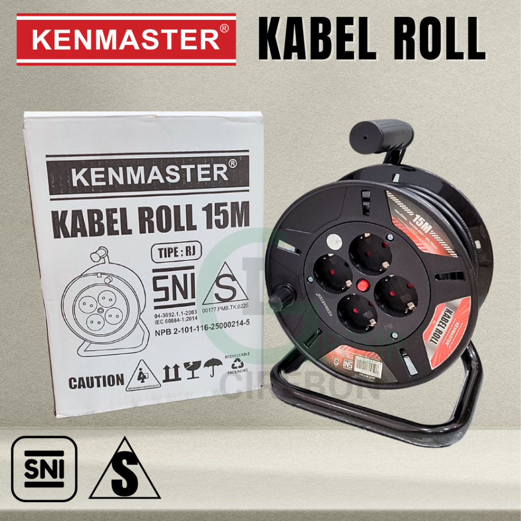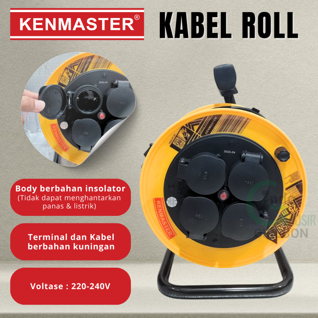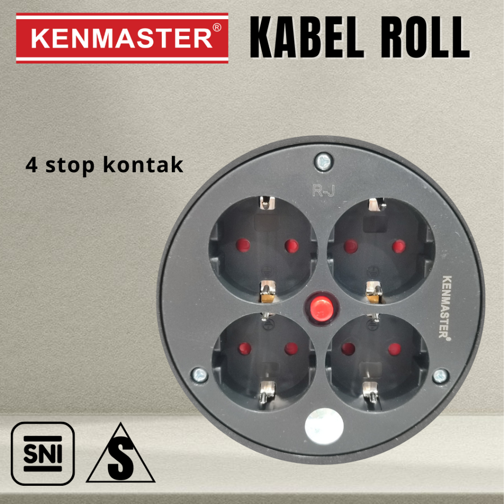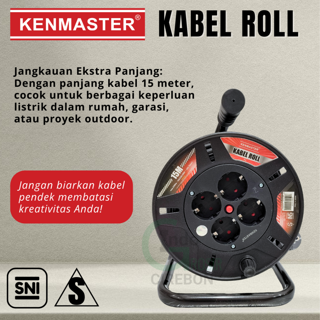 KENMASTER Kabel Gulung 15 Meter Terminal Kuningan 4 Colokan Kabel Roll 15M 25M