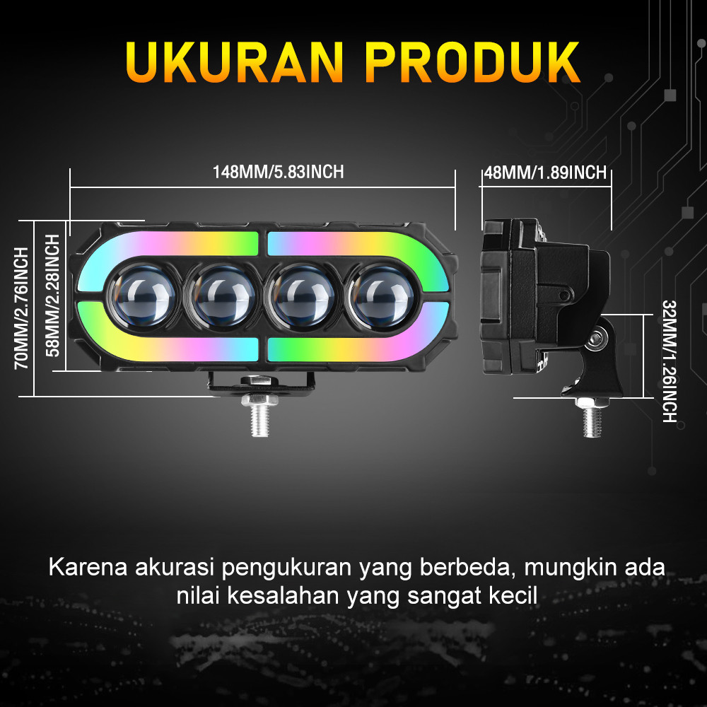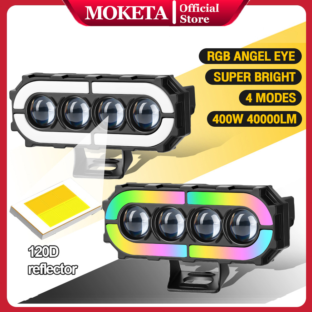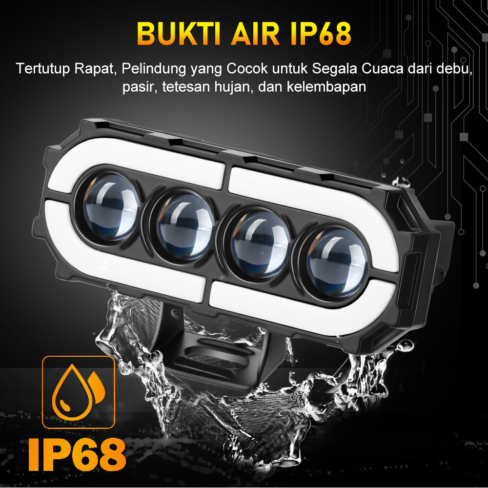 Lampu Tembak Laser SQL 4 Mata Lampu Mata Malaikat Berwarna Warni Full Alumunium Premium 400 Watt 40000LM IP68 DC 9V-85V