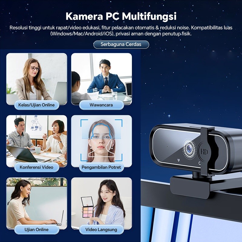 [Mall] WEBCAM 1080P LAPTOP USB KAMERA PC WITH MIC CAMERA WEBCAST LIVE ZOOM GOOGLE MEETING CAMERA BUILT IN MIC, AUTO-LIGHT BALAN