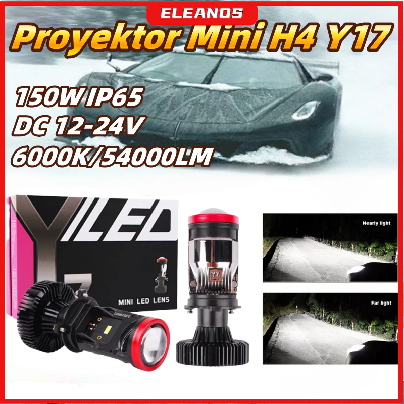 【】2 Pcs Lampu LED Mobil Y17D H4 Mini Projector Sorot Super Terang High Low Beam Laser Headlamp Pendingin