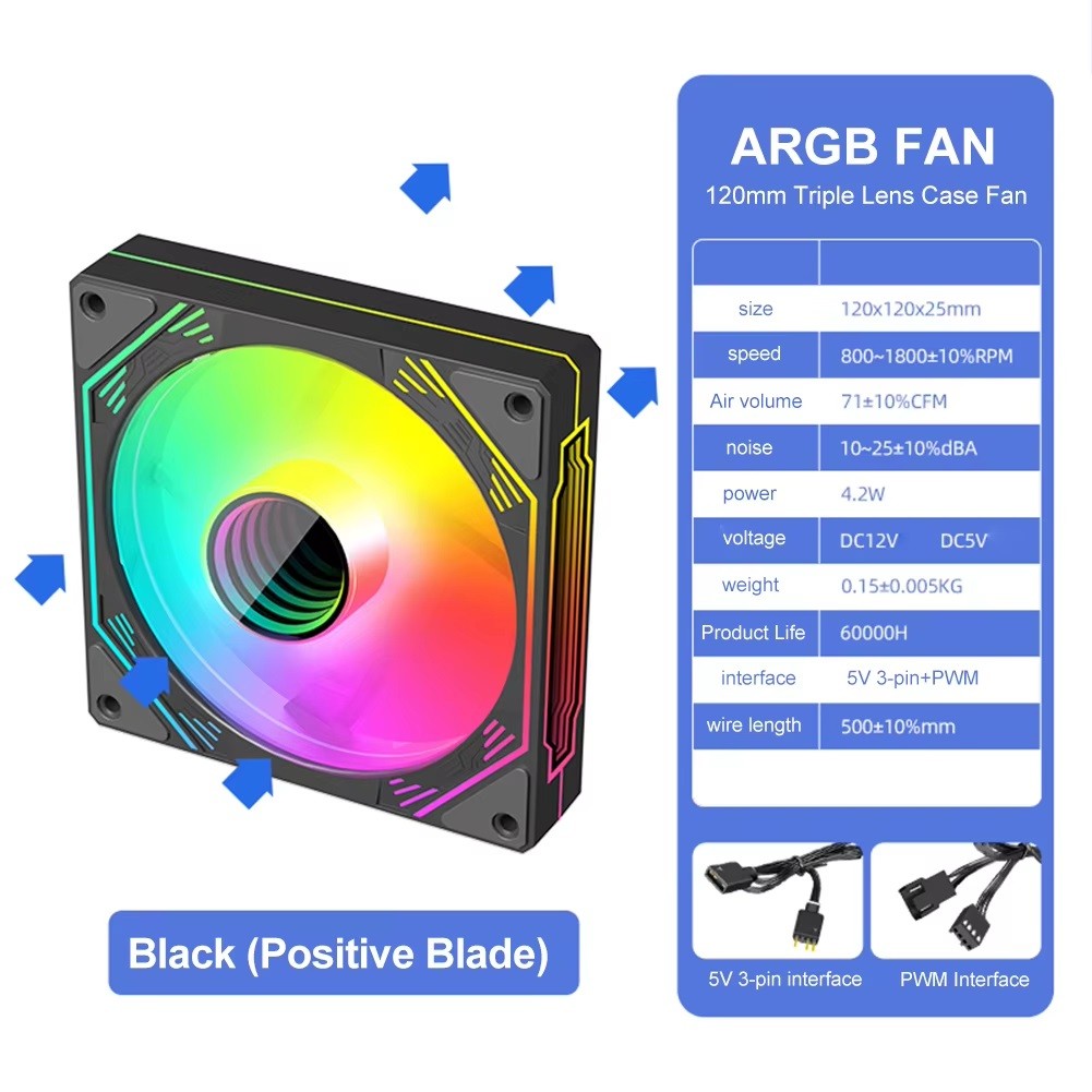 Kipas Infinity Mirror ARGB 120mm GEN3 Pro ARGB PWM 2 dalam 1 Kipas Depan dan Belakang PC Desktop