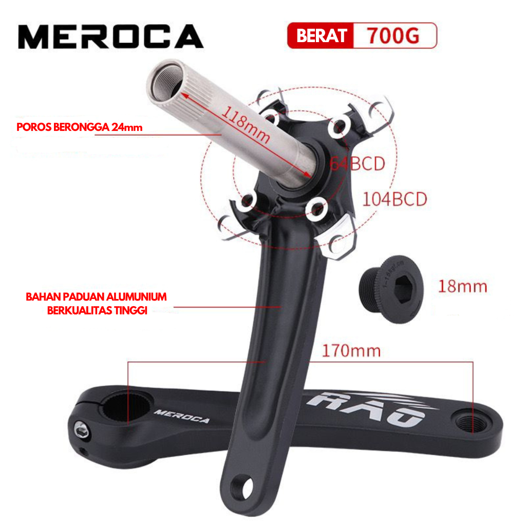 MEROCA RAO CRANKSET HT2 BCD 104 CRANK SET HOLLOWTECH MTB BMX ROADBIKE
