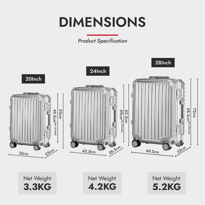 Koper Roaming Size Kabin & Bagasi Tsa Lock Aluminium Frame 20-28 Inch R067 - Black, 20 Inch